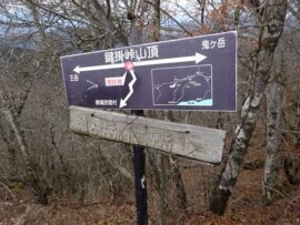 ▼コース : 河口湖駅 9:10 = 根場民宿 9:50 → 東入川堰場広場 11:00 → 雪頭ヶ岳 13:00 ( ~昼食13:30 ) → 鬼ヶ岳 13:45 → 鍵掛峠 15:00 → 西湖いやしの里根場 16:10