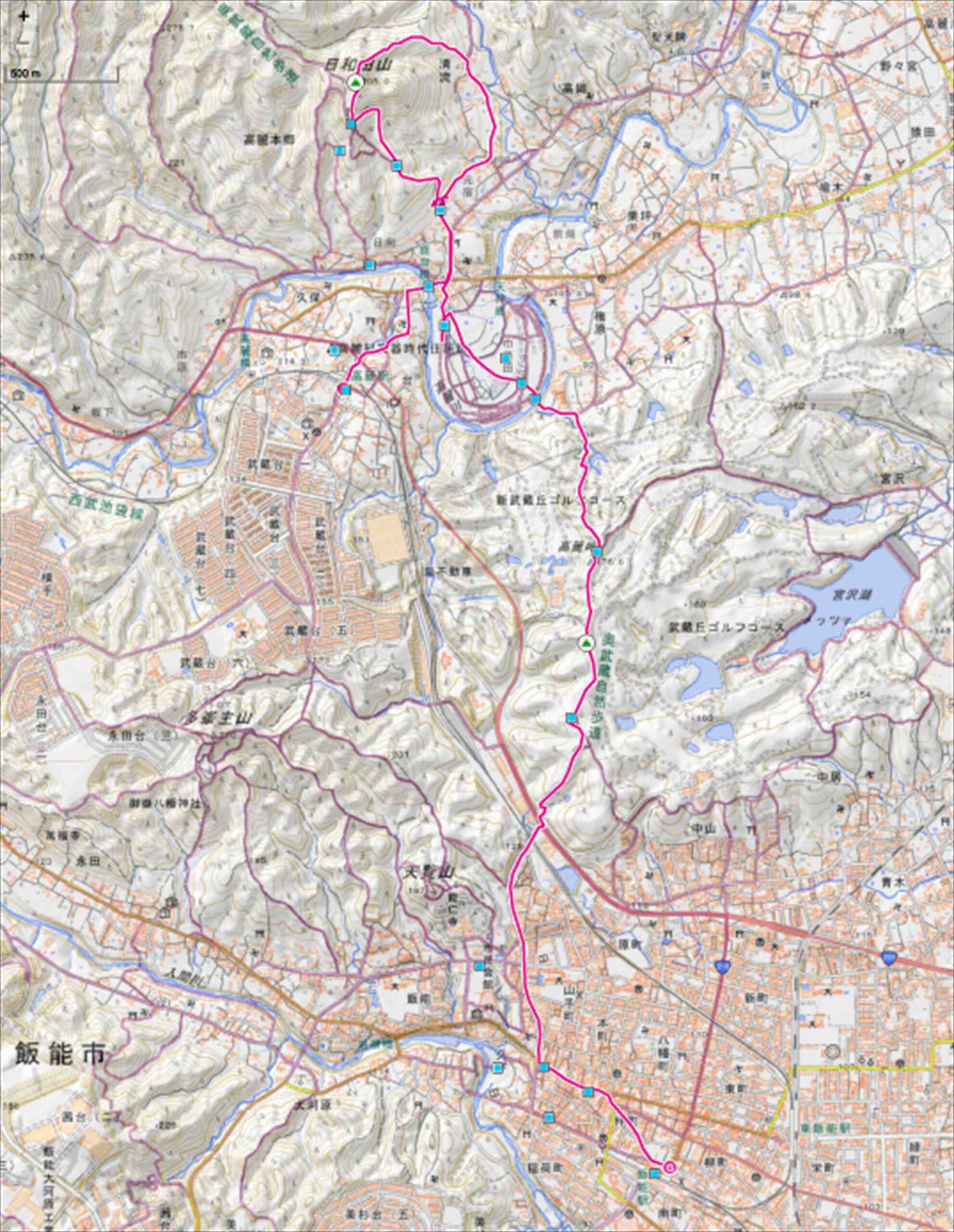 ▼コース : 高麗駅9:45 – 10:05日和田山登山口 – 10:20登山口 – 10:50日和田山 – 11:10金刀比羅神社 – 11:25男坂・女坂分岐 – 11:32日和田山登山口 – 11:55巾着田(昼食)12:30 – 12:35水車小屋 – 12:40巾着田曼珠沙華公園 – 12:43:ドレミファ橋 – 13:00高麗峠 – 13:13萩ノ峰 – 13:18ほほえみの丘 – 14:00登山口 – 14:15飯能駅