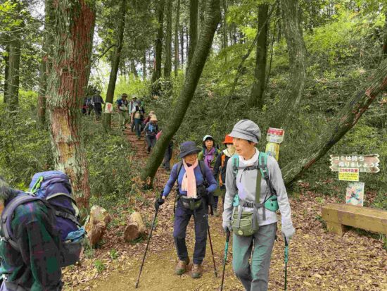 「日和田山」へはあまり人が登らない裏側からのコースを登りましたが、距離は短いとは言えかなりの急登もありました。会報にあった天覧山は全体の距離が長かったのでカットしましたが、たくさんの方に参加していただき、参加リーダーの協力を得て、二班に分かれて歩きました。故障者もなく無事に歩き終えることができましたこと、参加者、協力者、参加リーダーの皆さんに感謝します。ありがとうございました。
