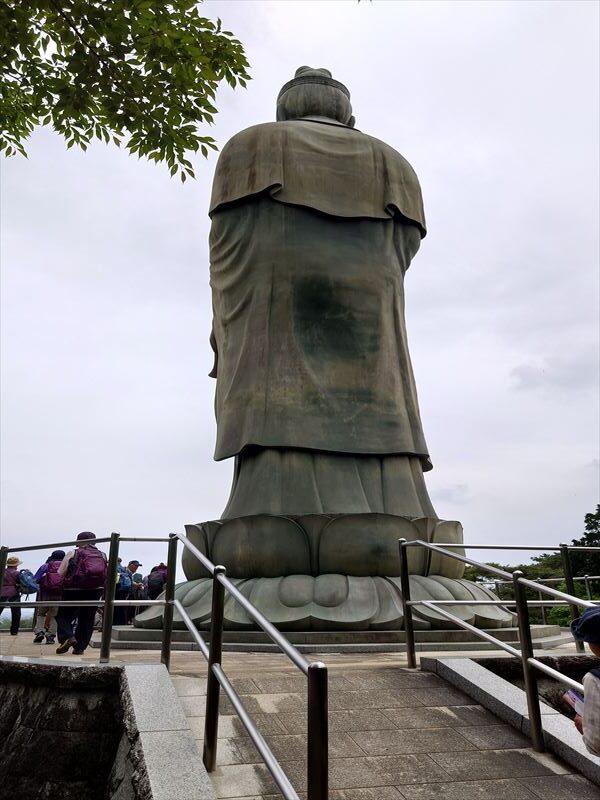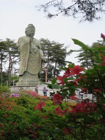「塩船観音寺」裏側の入口で入山料(シニア(75歳以上)250円)を支払い入ると巨大な塩船平和観音立像。