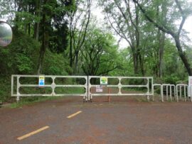 笹仁田峠 一般道に降りて車の駐車している道路を行き立正佼成会の敷地へ