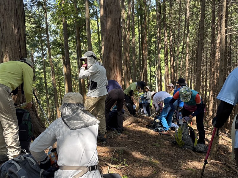 アップダウンが続きます。 木陰での衣服調整。水休憩を多めに取ります。