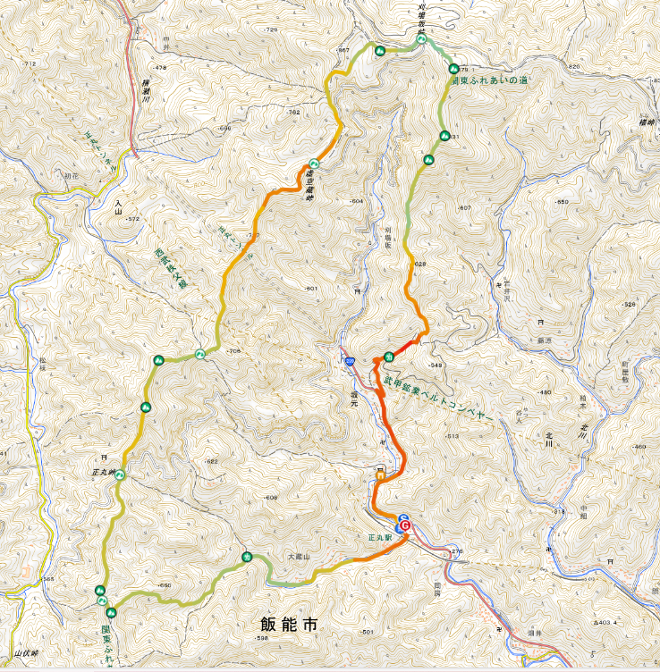 ▼ルート:正丸駅9時20分→登山口9時40分→小都津路山11時→大都津路山11時20分→ツツジ山11時50分(昼食~12時20分)→虚空蔵峠12時50分→川越山14時→小高山14時50分→正丸駅16時(解散)