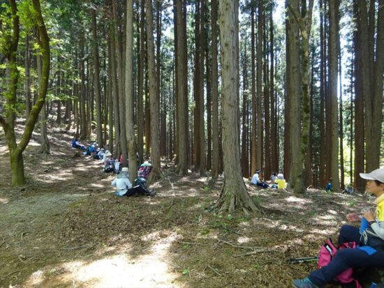 刈場坂峠の涼しい木陰。待望の昼食時間です。