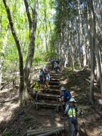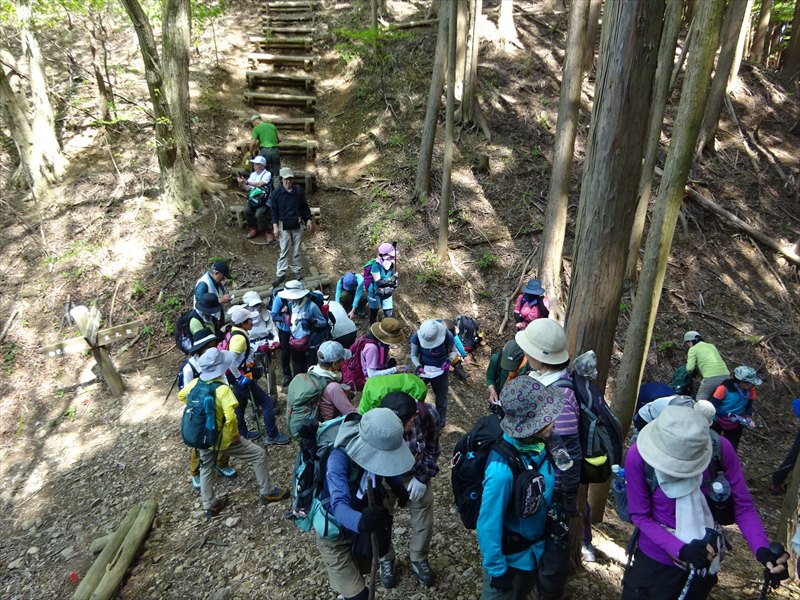 刈場坂峠の木陰で昼食を摂り、正丸峠の手前からは長い階段の急登が続きましたが、バテる方もおらず皆さん頑張って歩かれました。