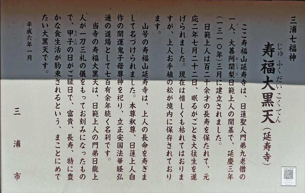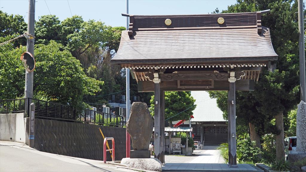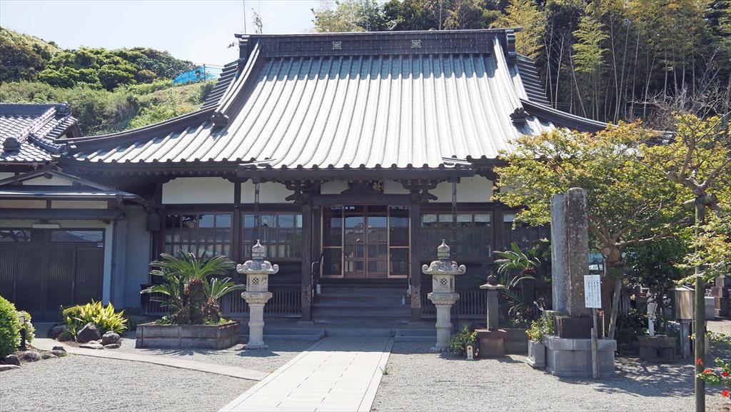 元は真言宗の僧だった日範上人は、松葉ヶ谷で日朗上人と法論の末改宗。日範上人は正応3年(1290)和田村へ入り、日蓮聖人が流された伊豆を遠望する磯の石窟で荒行・誦経・説法を3年間続けた後に圓徳寺を開いた。元禄地震(1703年)の津波や関東大震災(1923年)で被害を受けるも、昭和6年(1931)に本堂を再建、現在に至る。