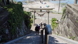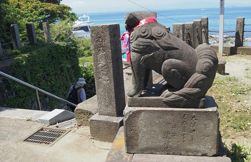 狛犬 天保4年と刻まれていた 急な石段 正面は海