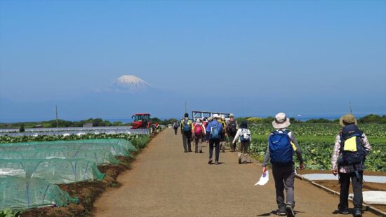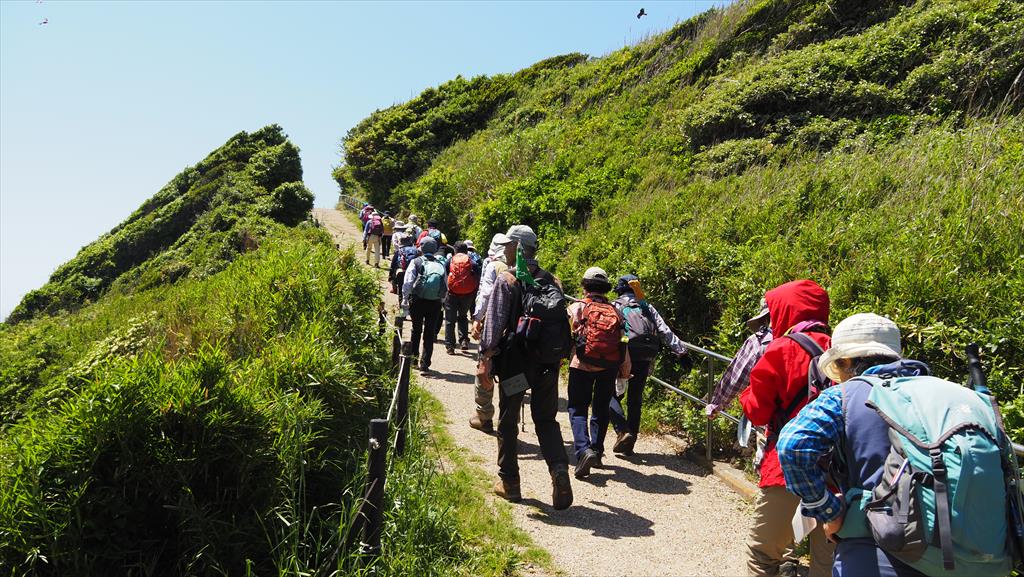 五月晴れの中 広々とした三戸の畑道からキラキラ輝く海原に潮風を浴びての楽しい山行でした。