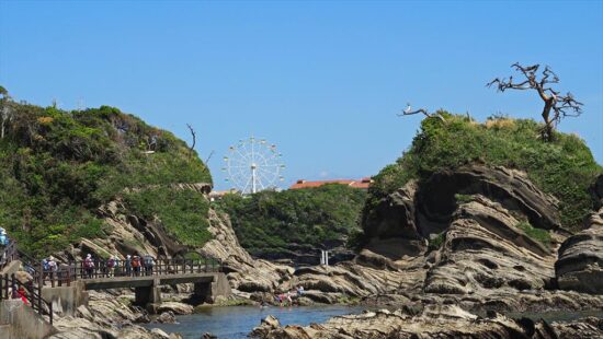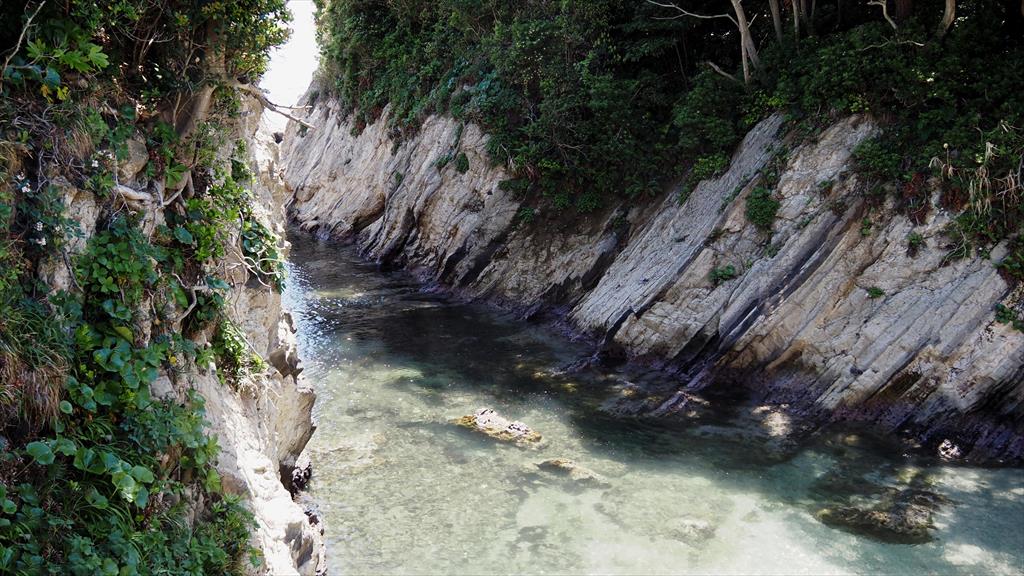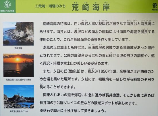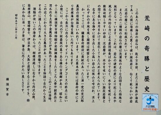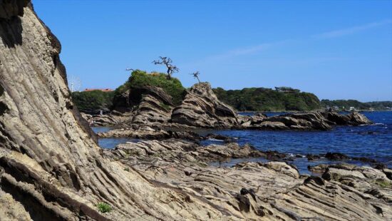 荒崎海岸は切り立った荒々しいリアス式海岸が続き、かながわ景勝50選に選ばれています。