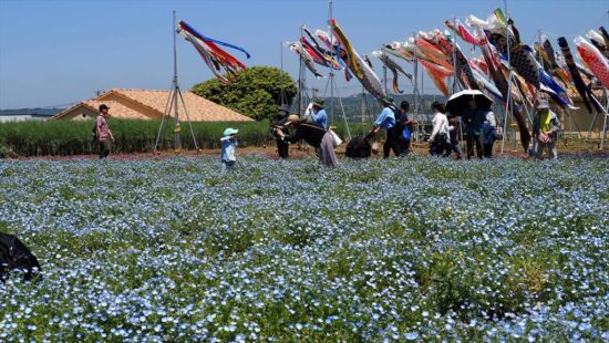 園内には鯉のぼりが泳ぎ ネモヒラの花が満開です。