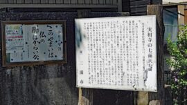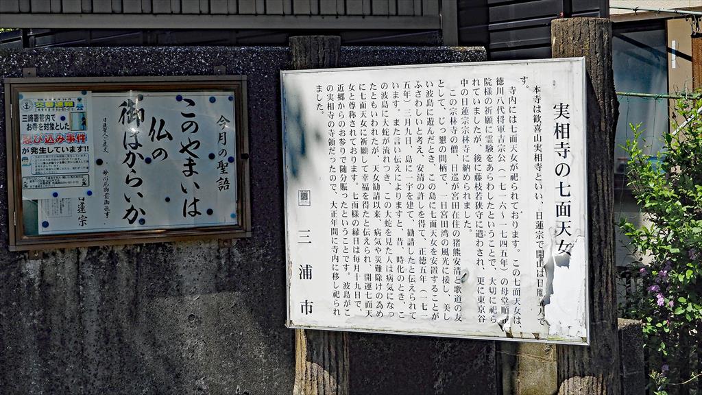 七面様の縁日は毎月19日で、近郷からのお参りでずいぶん賑わったということです。波島がこの実相寺の寺領だったので、大正年間(1912年~1926年)に寺内に移し祀られました。(七面天女説明板より)