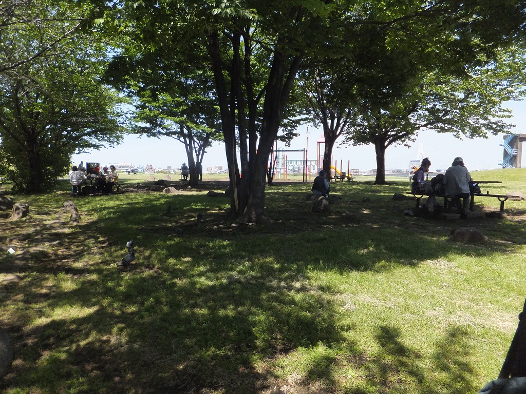 大師河原水防センター前の公園で昼食(12:00~12:45)