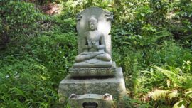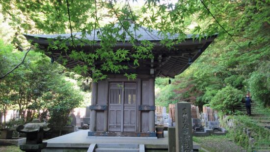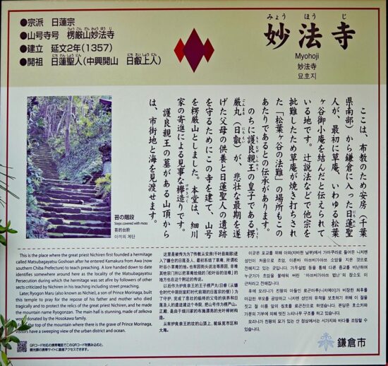 上図、右下は南の方供養塔(中興開山である日叡上人の母の墓)と右上は松葉ケ谷御小庵跡