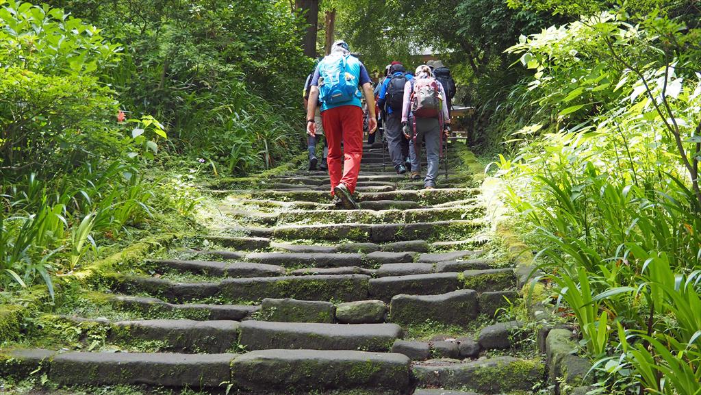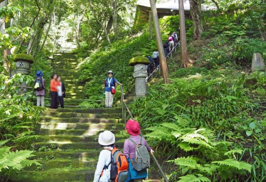 曇り空から晴れになり、強い日差しの中、新緑と苔の石段など歴史を感じながらの寺社巡りをしました、