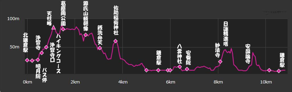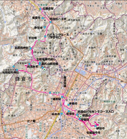 →12;10佐助稲荷神社12:15→12:48鎌倉駅→13;09八雲神社(祇園山ハイキングコース入口)13:16→13:40妙法寺14:10→14:20安国論寺14:40→JR鎌倉駅15:02