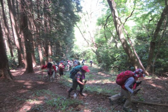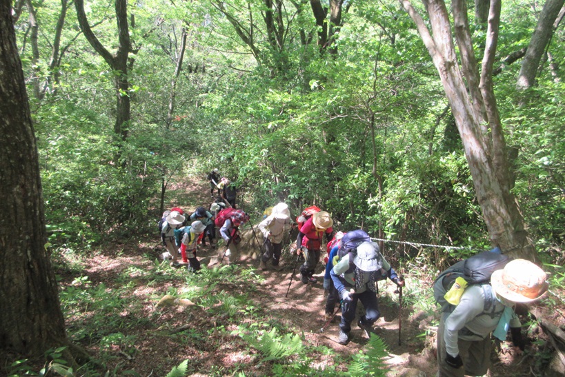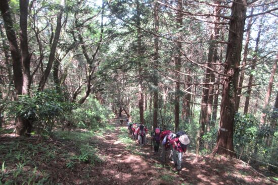 このコースは、岩場などなく歩きやすくコースの難易度は低いのですが、距離は長く、アップダウンも多く、体力はかなり要するコースです。 みなさんバテながらも最後まで歩いていただきました。