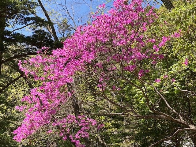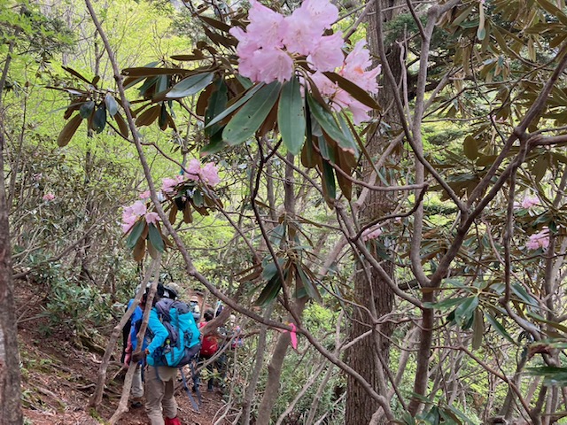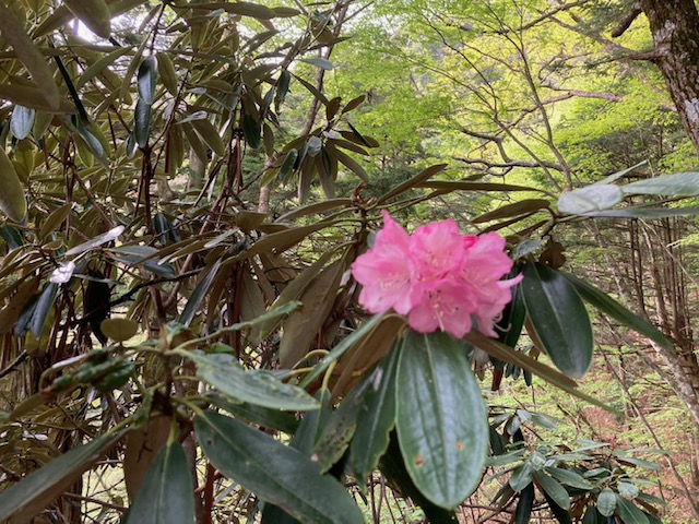 今年は期待したお花は少し咲いてただけで残念でした。 黒檜岳もシャクナゲの木が多く我々の眼を楽しませてくれました。大平山分岐に出ると目の前がパッと明るく景色が一変し、大パノラマ