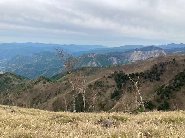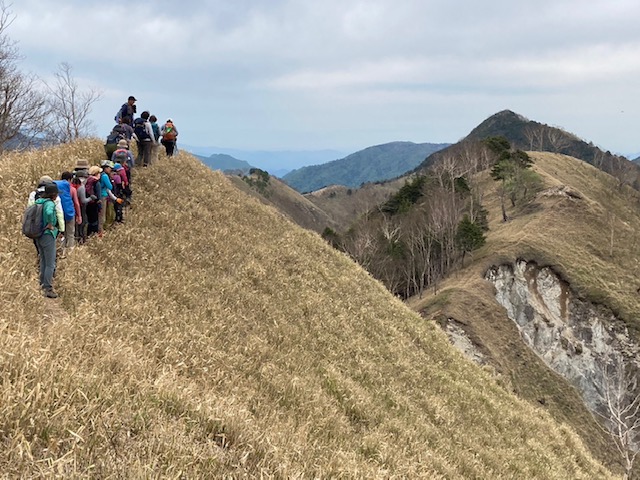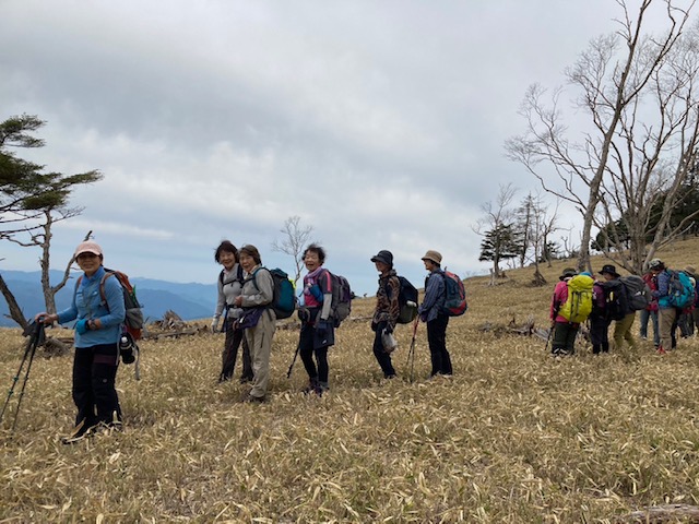 ササの茂った尾根が続く中時々足を止めて後方の景色を楽しむ!
