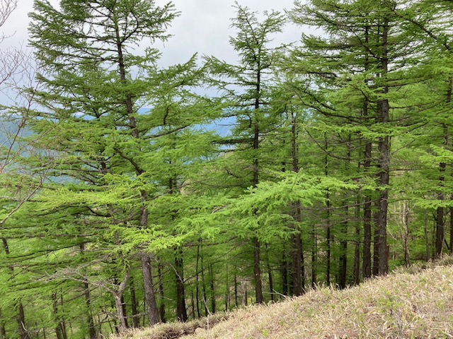 展望よく素晴らしくカラマツ林の芽吹きが美しく目を楽しませてくれる❕