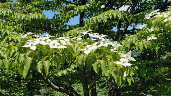 期待の一丁平のメインのヤマボウシの木は、今年は花芽がつかず 1、2輪しか咲いてなかったが、他の数本は開花していました。