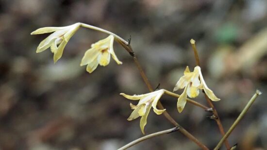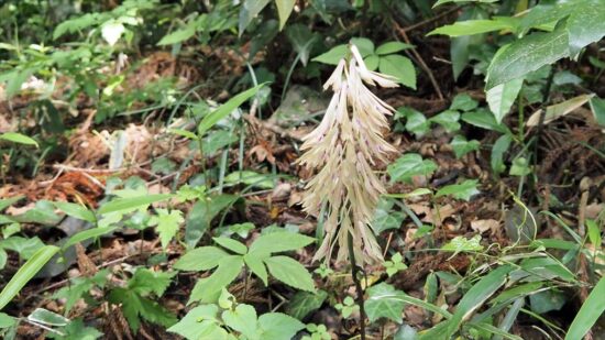 名の通り葉がなく、葉緑素も持たない菌従属栄養植物です。
