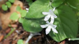 三重県の稲森山で最初に発見されたことから、その名が付いた。高尾山でも広く自生しているが、数はさほど多くない。葉の大きさは約3~6センチで、卵形をしている。うぶ毛が生えやわらかい感じ。1つの茎に4枚から6枚の葉を広げ、淡い赤紫色の花が浮かんだように咲く。花の直径は約2.5センチで、先が5つに分かれている。ふちはフリルのように波うち、デリケートな雰囲気。雄しべのつく位置によって、雌しべが長い花と短い花の2つのタイプがある。