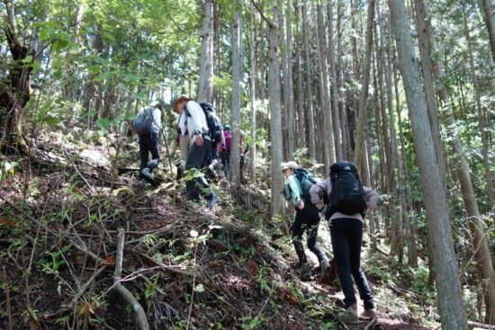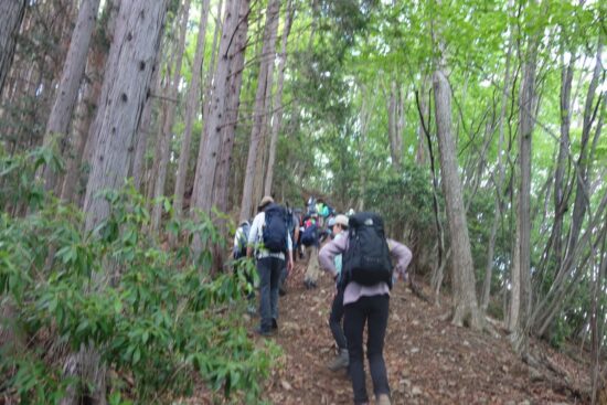 飯能駅から名郷行のバスは相変わらずの長蛇の列でしたが、全員乗車し無事名郷に着くも約20分程遅れる。予定コースが6時間30分と長いコースなので心配したが、夏のアルプス山行のトレーニングを兼ねて参加された方が多く健脚揃いでした。2か所注意するところがありましたが、皆さん難無くこなし天候にも恵まれたお陰で、予定より30分程早く下山することが出来ました。