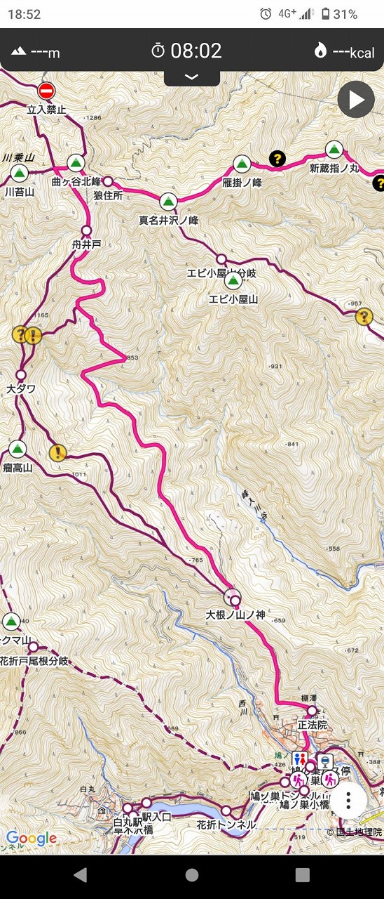 眞井沢ノ峰(昼食)12:50-狼住所12:59ー大根ノ山ノ神15:09ー15:51鳩ノ巣駅