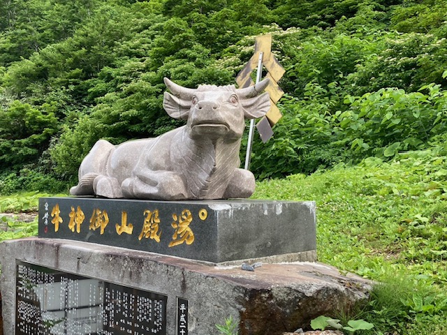 湯殿山御神牛 (火を消す神様との事 背中で火を消したので背中を撫でるのだそうです。)