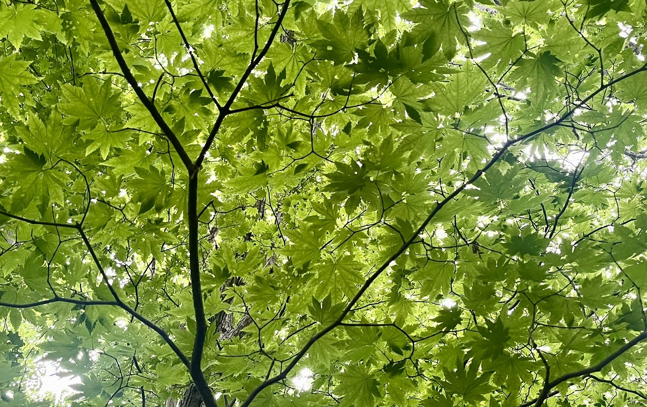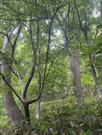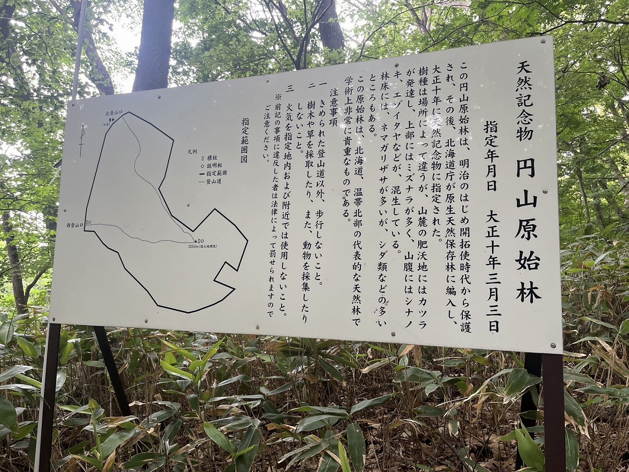 カツラ、ミズナラ、シナノキ、エゾイタヤなどの天然林があり、非常に貴重な原生林の中を丸山