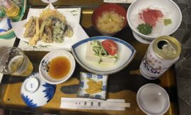 旭山記念公園に下山 今日から4泊お世話になる芙蓉館の夕食