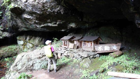 古来高山不動尊に登る際、不動滝のこの岩陰で修行した伝えられています