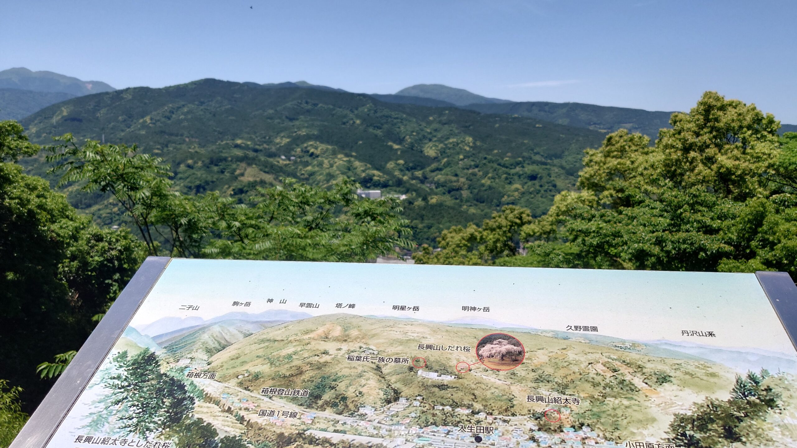 北方面は箱根の山々が連なる。