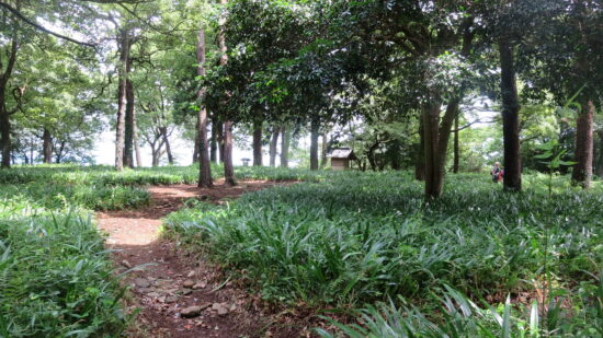梅雨明け前の安定しない天気の中、降雨は夕方からの予報で実施した。箱根登山鉄道「入生田駅」を下車したころには陽が当り蒸し暑い。石垣山以外は舗装道路歩き。上に行くほどに当る風が心地よい。石垣山で実際に戦いがあったのではなく、戦国時代最大と言われる小田原城を約15万の将兵を集めて、「北条氏と真田氏の間での領土紛争を豊臣秀吉が仲裁したが、北条氏が履行を覆した」こと等意に従わない北条氏を攻めるための「総合指揮所」のようです。水軍で海上も封鎖した戦いです。