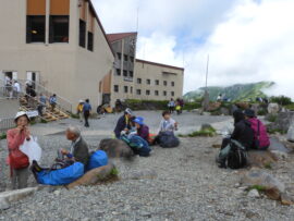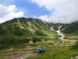 ▼コース : 21日(日) 天気:晴れ 富山駅 = 立山 = 室堂昼食(12:00―12:30) → 室堂散策 → ミクリガ池温泉・雷鳥沢ヒュッテ(14:00) (泊)
