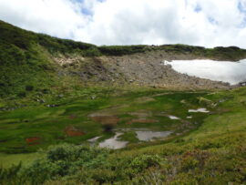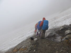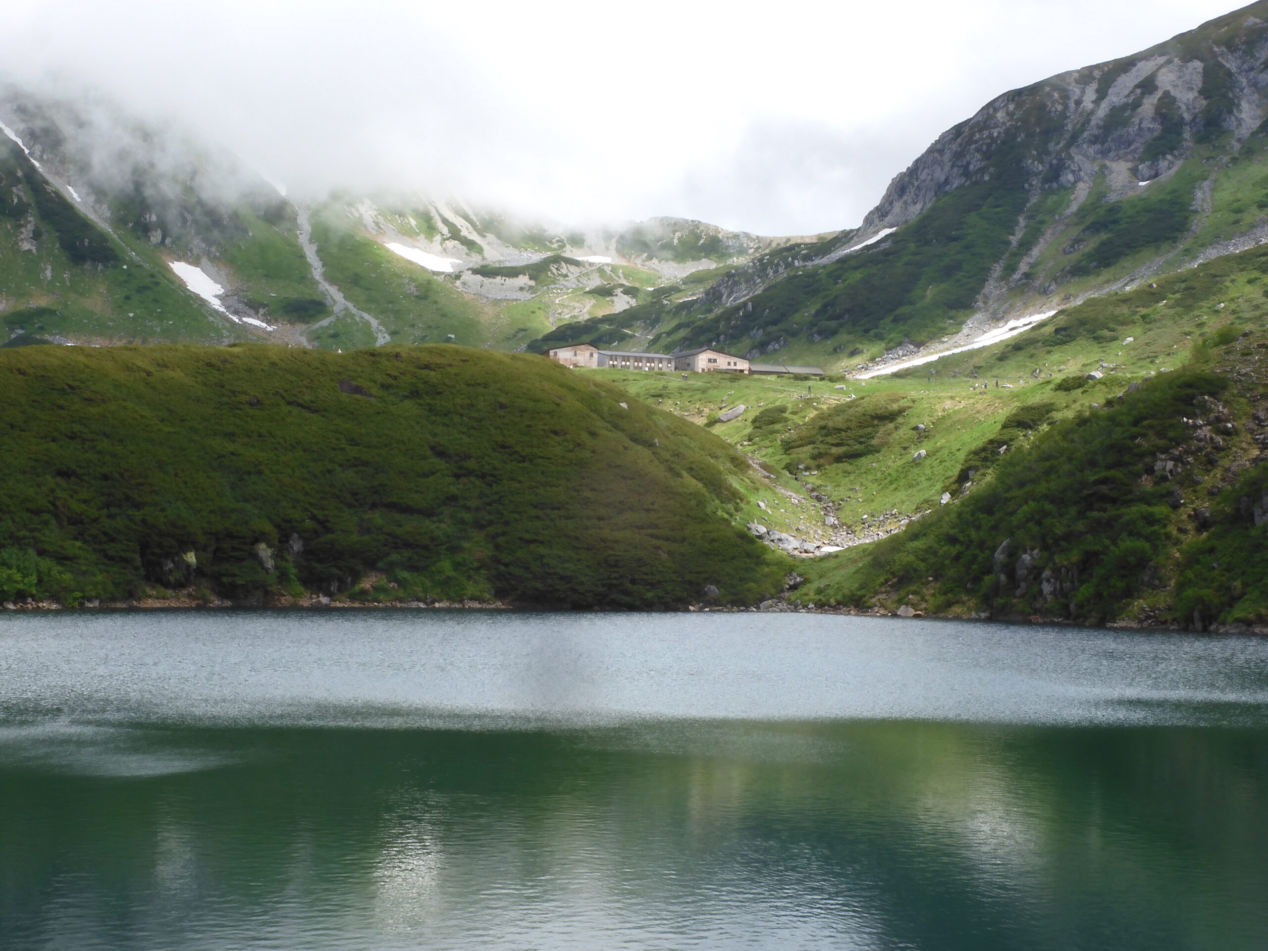 コメント:前半、天気は雨模様だったが後半、晴だったので実施したが室堂に降り立つとガスがかかっている。早速登山計画書を提出すると室堂山経由は落石で危険なので一ノ越経由ををお勧めします。と言われた。一ノ越迄雪渓のトラバース3箇所、鬼岳の東面を巻いて行くが雪渓のトラバース3箇所、岩場と足場の悪い登山道間隔をあけての行動。でも時折ガスが晴れて素晴らしいお花畑を観ることが出来た。スゴ乗越しから薬師岳に向かう日が風速14メートルと予報は変わらず五色山荘から黒部湖に下山する事にしました。山荘から平ノ小屋迄は歩いた事は無いが平ノ小屋から黒部湖迄は数年前に針ノ木で歩いては居るが2度と歩きたくないコースだったが室堂に下山するより良いかなと思い下山した。