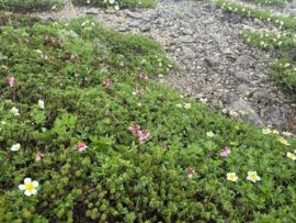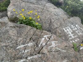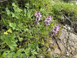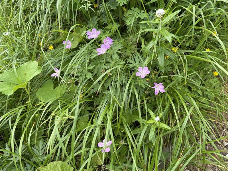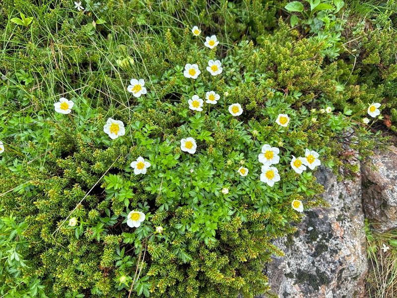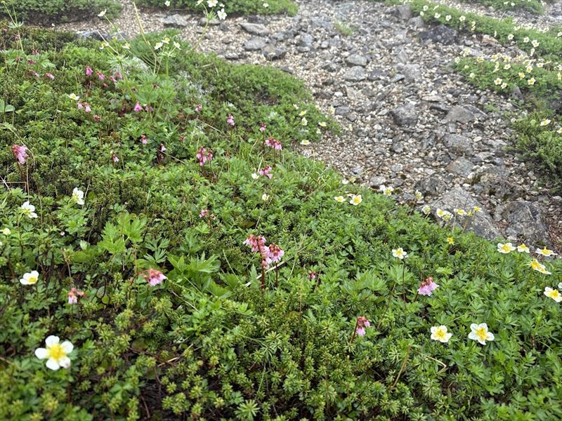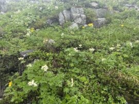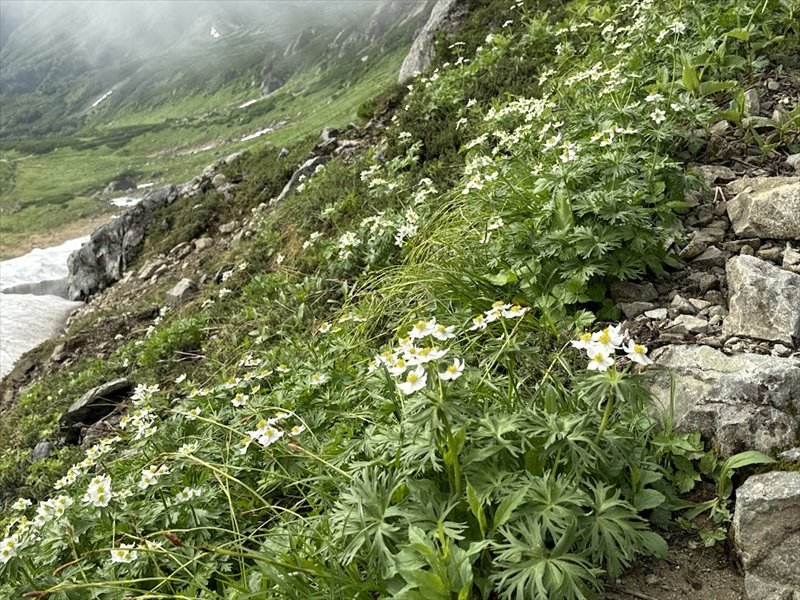 三俣に向かう路。ミヤマダイコンソウが岩の隙間に花束のように咲いていました。