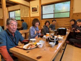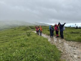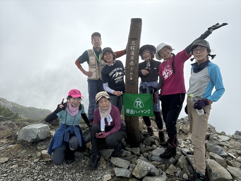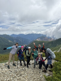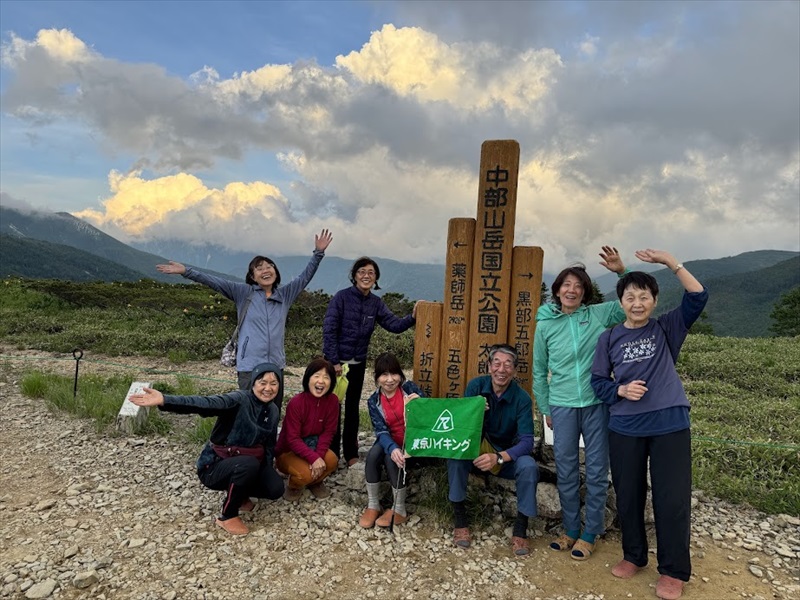 折立から歩き始め、黒部五郎岳、鷲羽岳、水晶岳、三俣蓮華岳、双六岳、そして、鏡池を通り、新穂高温泉まで、絶景の中を歩くコースでしたが、天候が不安定で水晶岳には行くことができませんでした。それでも、たくさんのお花畑で多くの高山植物に出逢え、鷲羽岳や槍、穂高の雄姿を目にすることができ、満足できる山行になりました。共同リーダー、参加者皆さんがよく協力し頑張ってくださったお陰で、全員無事に下山することができ、心から感謝しています。下山後、素敵なホテル穂高で、温泉に入り、露天風呂を楽しみ、無事下山できたことの祝いの乾杯をあげることもできました。ご一緒してくださった皆さん、本当にありがとうございました。