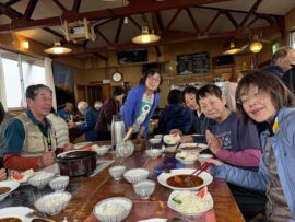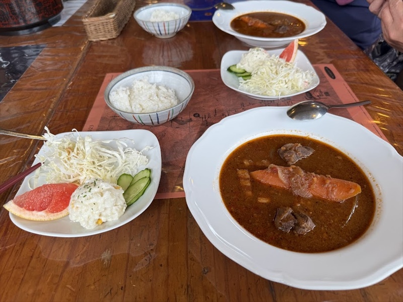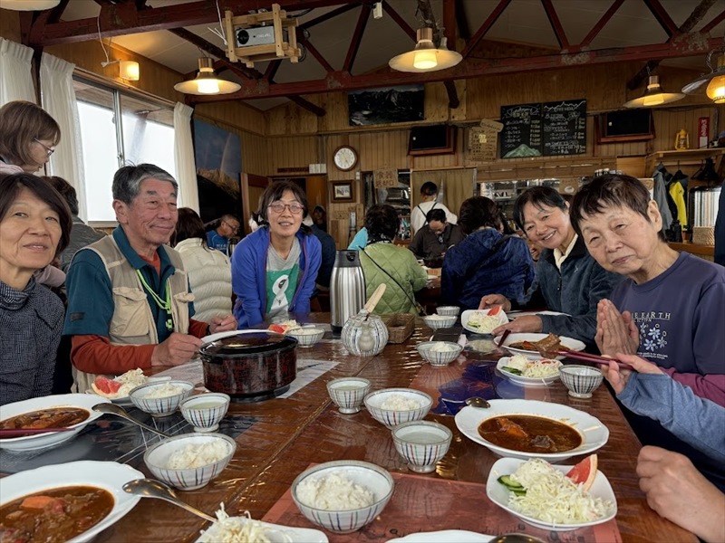 三俣山荘名物のジビエシチュー。二ホンジカの高山植物への食害を知ってもらうために提供を始めたそうです。