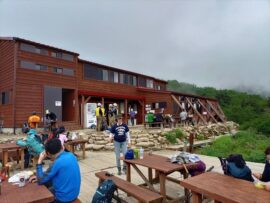 鏡平山荘。お目当てのラーメンとかき氷を注文できて満足でした。