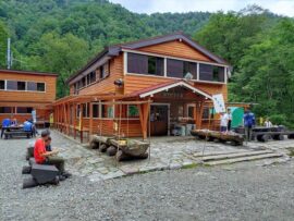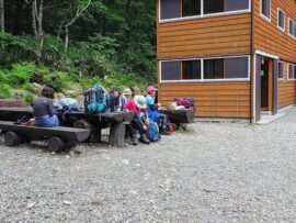 わさび平小屋。バナナやキュウリなどを丸ごと食べることができました。