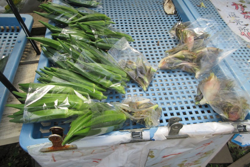 信号の近くにあった無人野菜直売所でみなさん買い物