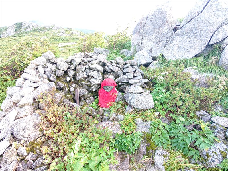 8日 切合小屋5:30→草履塚6:05→姥権現6:22→御秘所6:30→本山小屋7:30→飯豊山8:11→駒形山8:30→御西岳9:20→大日岳11:14→御西岳13:20→飯豊山14:30→本山小屋14:50→草履塚16:30→切合小屋16:58(泊)