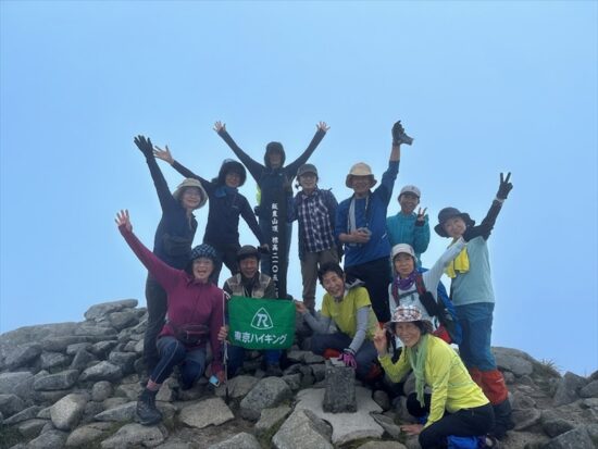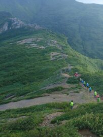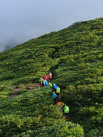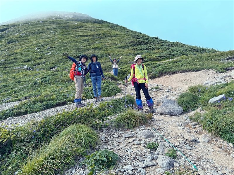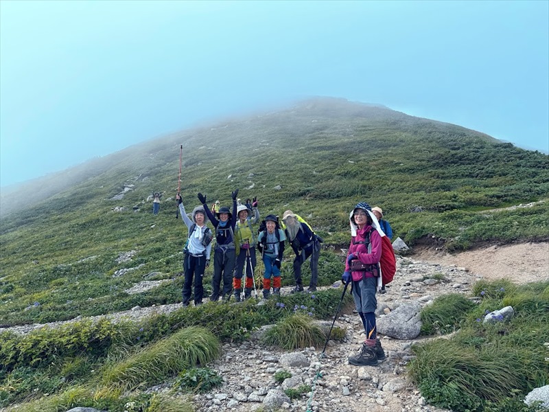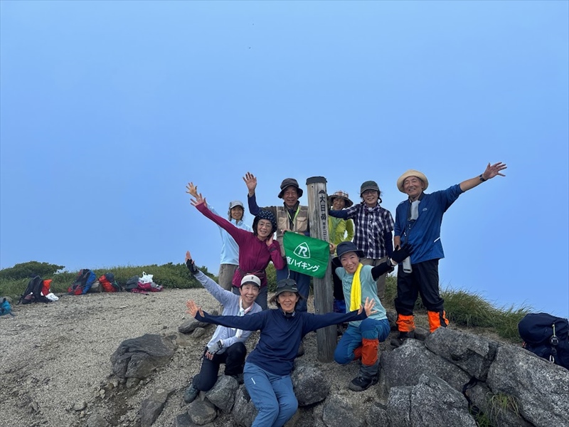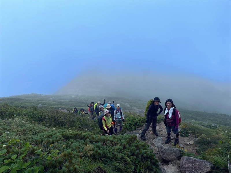 一日の歩行時間が長く体力が必要な山行となりましたが、皆さん元気に歩かれました。お天気にも恵まれ、無事、飯豊本山、大日岳に登頂できました。多くの高山植物に出逢え、まさしく天空の花畑を満喫することができた山行になりました。共同リーダー、協力者、参加者の皆さんが協力してくださったおかげで、怪我をする方もなく山行を終えることができ、感謝の気持ちでいっぱいです。ありがとうございました。