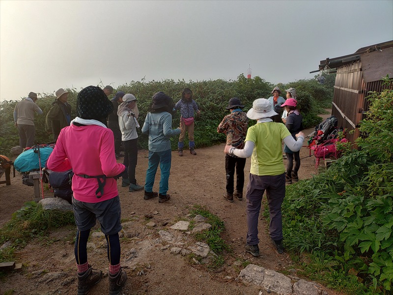 7日 白川荘5:00宿送迎バス=大日杉5:30→地蔵岳9:25→切合小屋13:00(泊)