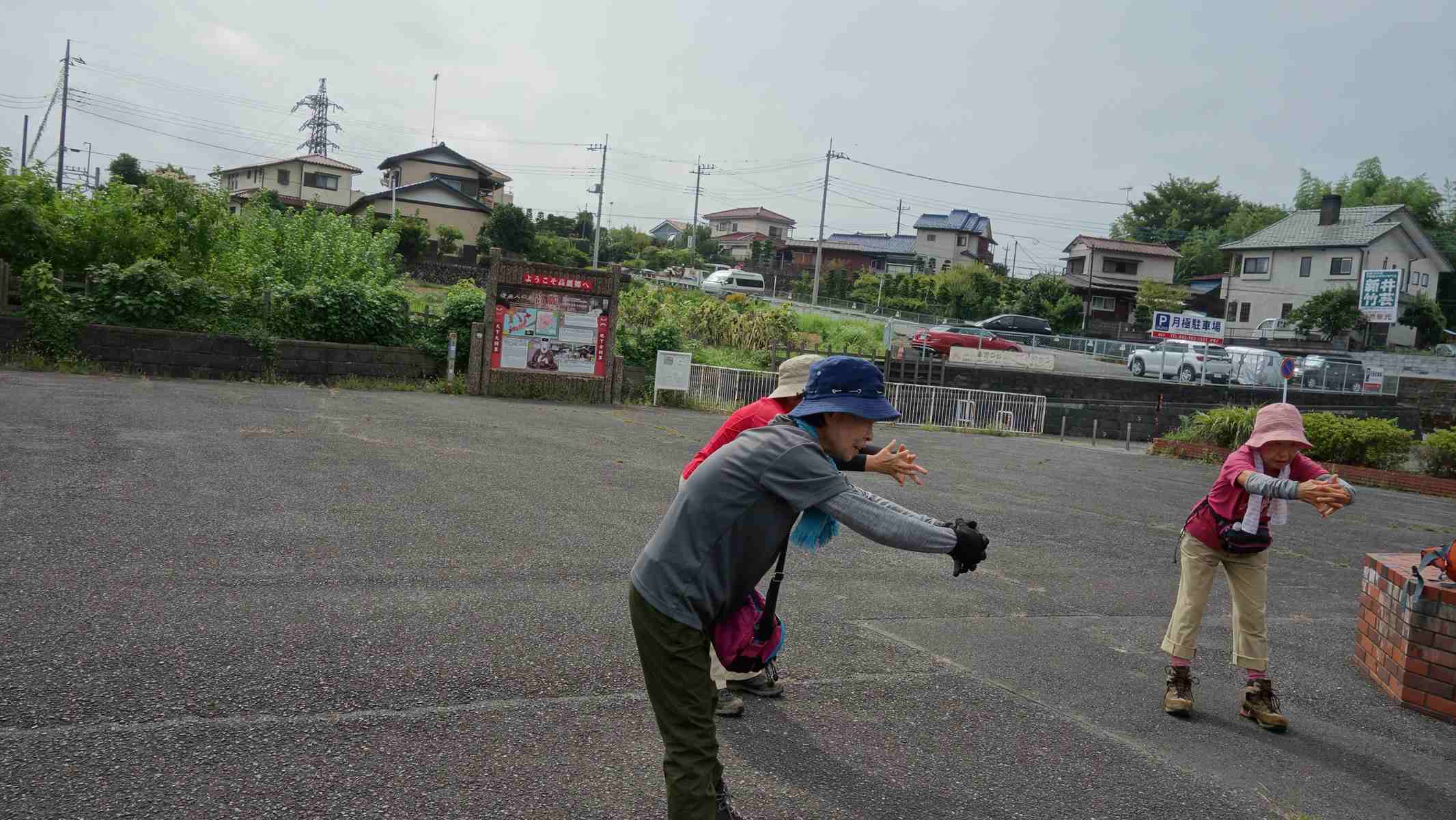 見晴らしの丘登山口で水分補給