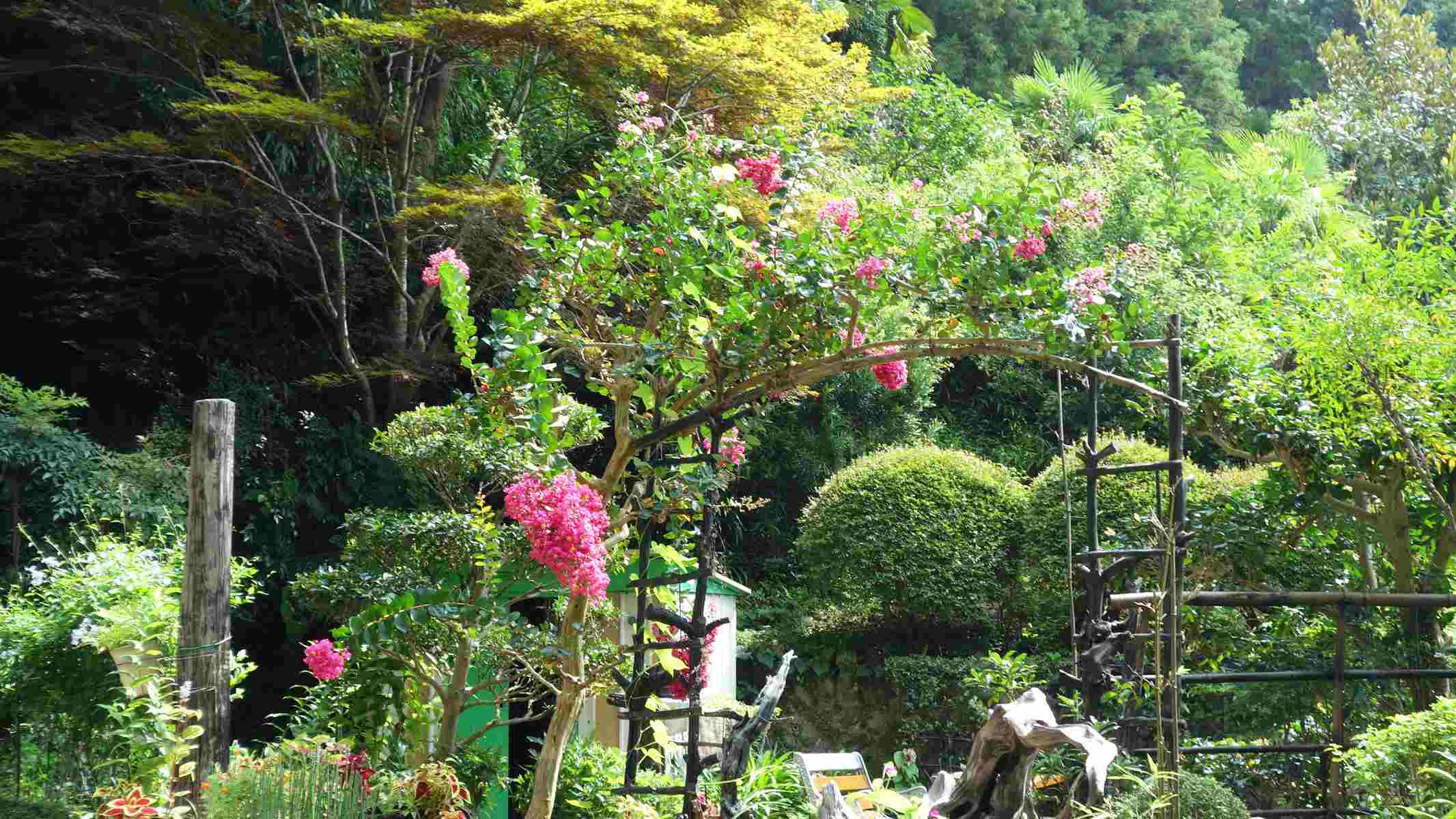 登山口脇の綺麗に手入れされた庭