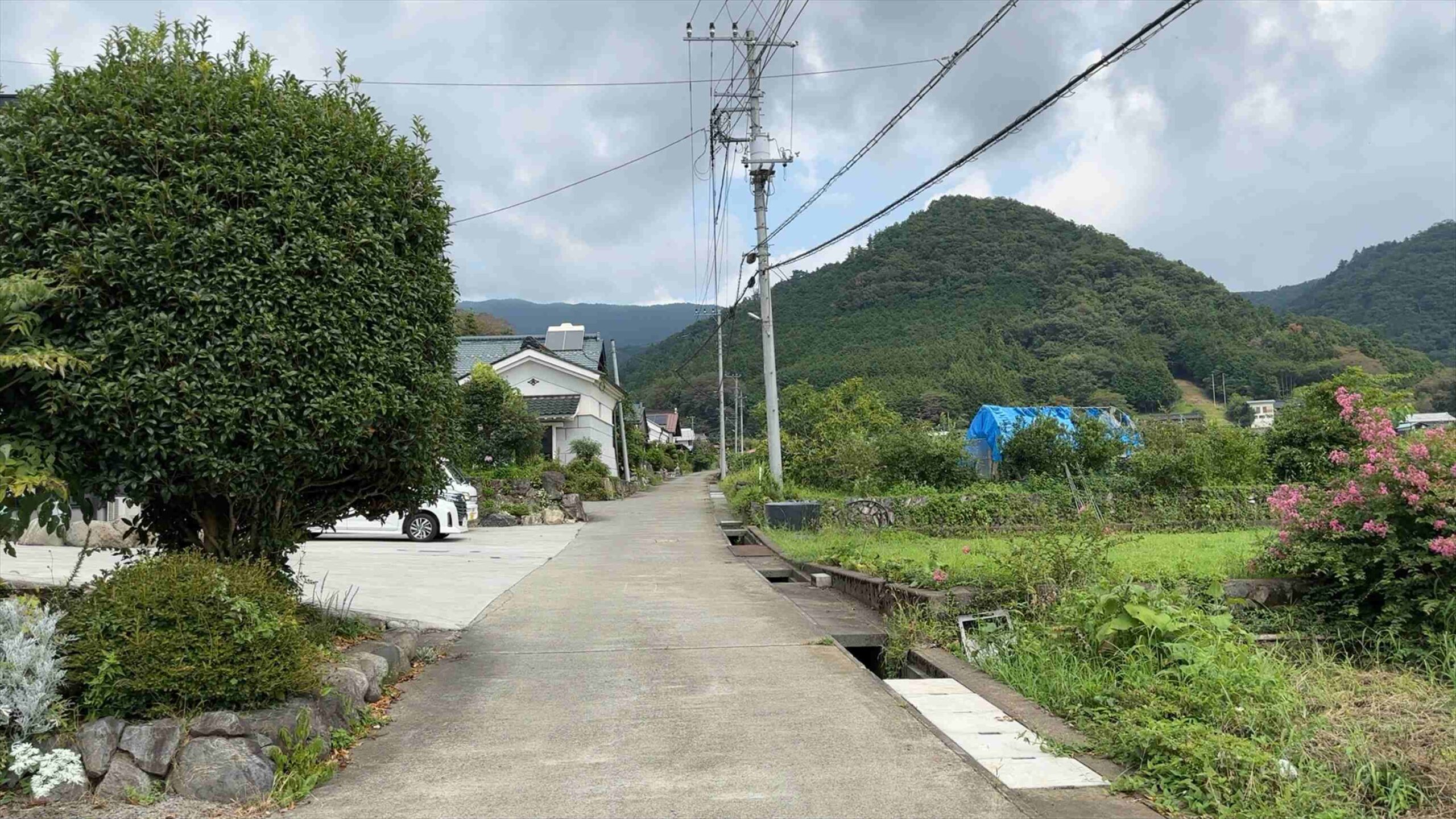 「芦垣下バス停」から芦垣の集落へ向かう。(こんな山の中に大きな集落があります。)