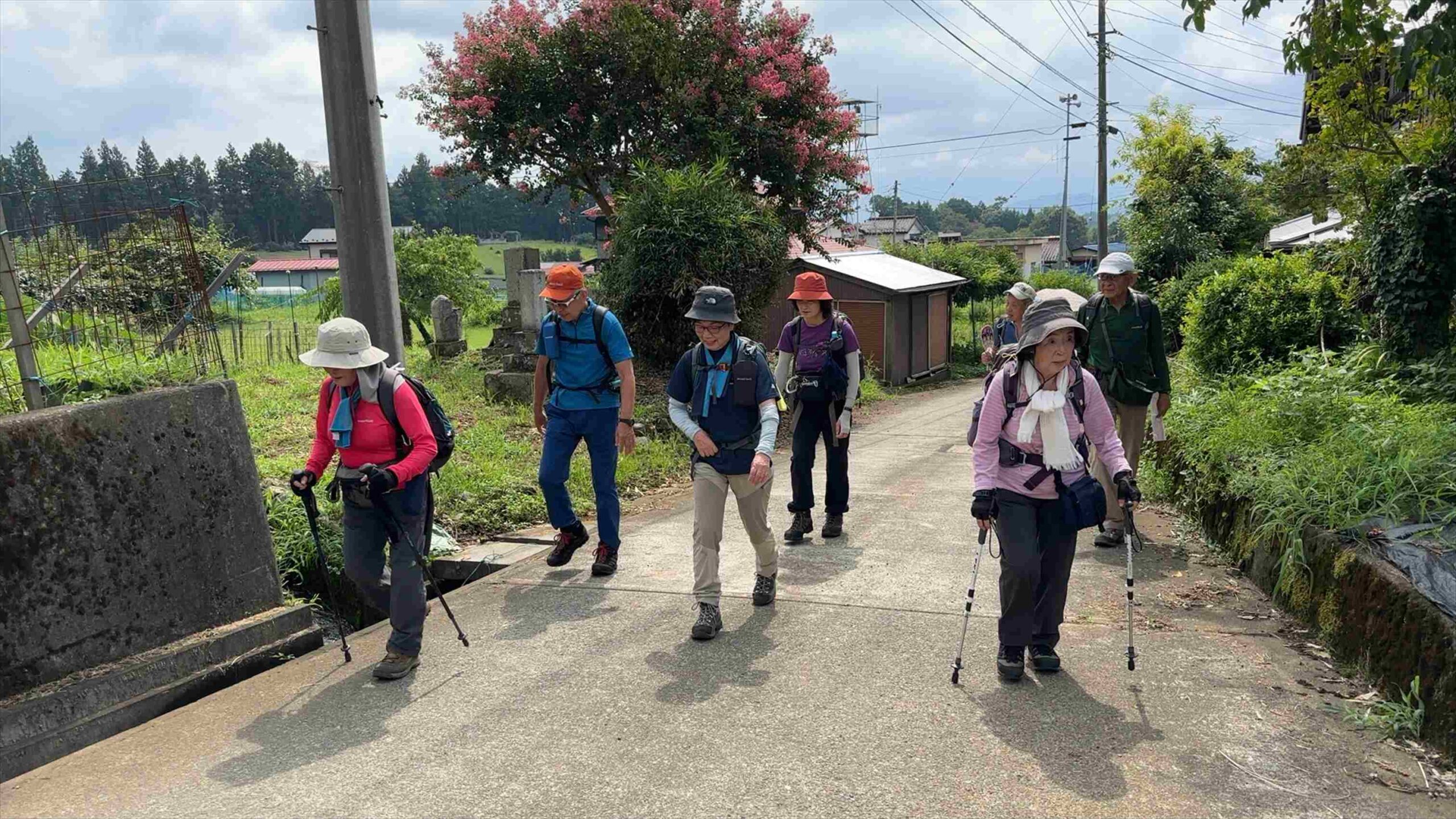 私の後ろのペースメーカーがよかったのか、一団となって歩きまして予定通り14時過ぎには新井バスに着きました。天気予報ではお昼ごろから雨との予報もありましたが、午後は逆に晴天が広がりました。ただ、残念ながら所々で見られるはずの「富士山」は厚い雲に覆われて姿を現わしませんでした。