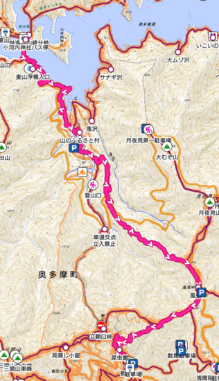 14:20砥山14:30-15:15都民の森バス停15:50-(バス)ー17:15武蔵五日市駅